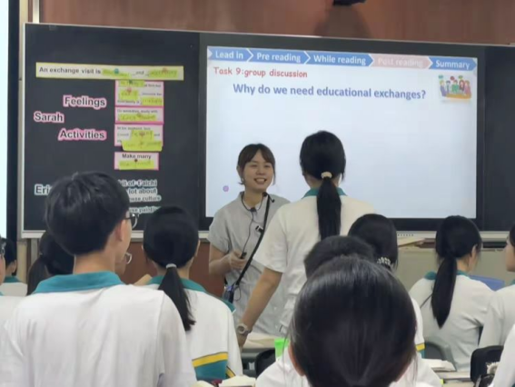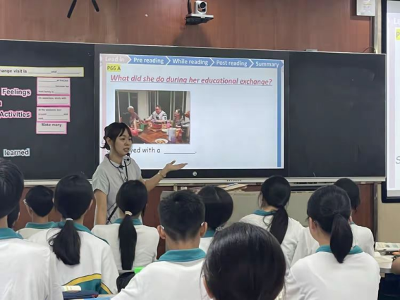 2024年11月14日,英语科组林炫仪老师代表广州市实验外语学校参加了广州市白云区永平人和联片教研,为白云区中学所有英语老师上了一节生动精彩的展示课。林老师选取第五单元的阅读文章,主题为《An exchange visit is educational and interesting!》。林老师以其独特的教学设计和丰富的课堂活动,不仅让学生们掌握了语言知识,更激发了他们对传统文化传承的意识和中外文化交流的兴趣。