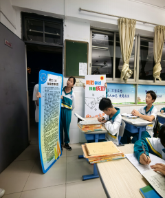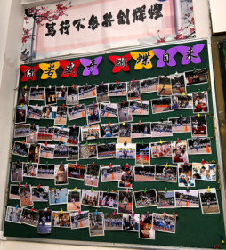 视线离开黑板报,挪动到墙壁,各班教室墙壁上都有“拼搏”、“思恒”和一些中英搭配的名言。让同学们在名言中找到共鸣,启迪着同学们的思想,同时也激励着同学们为目标去努力和付诸行动。三班还有热情洋溢的解说,绍着班级文化特色,看得出他们的细致与用心。