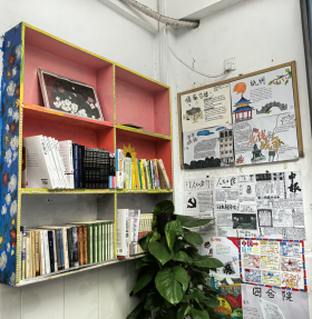 “书籍是人类进步的阶梯”,温馨的读书角,用书香涵养同学们的品格。阅读和“悦”读充盈我们精神。