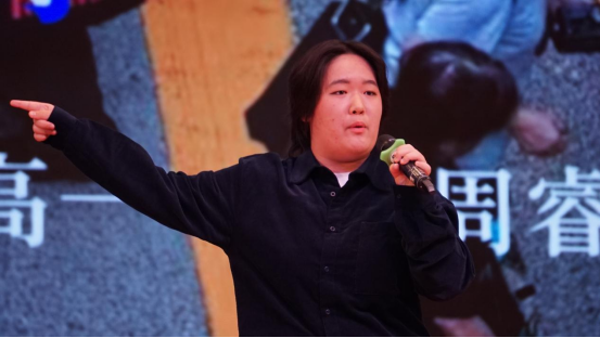 第十三位选手郭飞儿演讲时,眼神深邃,似乎在不断地与内心对话,确保每一个字、每一句话都经过深思熟虑,用精雕细琢的语言论述她的观点。