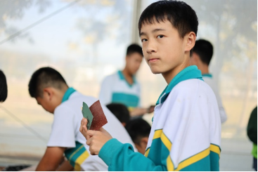 制作完拓染,我们来到了“筷子制作间”,每个同学都要制作一双属于自己的筷子,我们要将木棍放在模具中,将刮削的工具嵌在模具之上,一推,一拉木棍被削成一片片光滑而的薄片,这时筷子还有些粗糙,我们用砂纸包住,用力拧住木棍,来回摩擦,木棍上不断散出一粒一粒的碎屑,不一阵子,一双光洁的筷子便完成了,有的同学抚摸着筷子,向他人炫耀着自己的杰作,有的同学则将筷子放入袋中,留作美好的回忆。