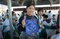 在扎染的过程中,同学们绞尽脑汁思考着怎样才能捆扎出好的图案。染上颜色后,我们更是抑制不住以及的好奇,像拆盲盒一般展开棉布。有的花纹精致,有的恰到好处;而有些则只得到一块深蓝的布。扎染便在大家的互相打趣和欢声笑语中结束了。