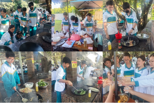 虽然我们提前知道秋游要野炊,但我们仍然很忐忑,因为有的组内没有人会做饭。所谓车到山前必有路,来到了野炊的地点,听从组长号令分工,合作有人洗菜洗盆,有人切菜,有人手忙脚乱的把控柴火。组里勉强会炒一两个菜的同学也只能硬上。怕被烫着的同学,将番茄扔进滋滋冒泡的鸡蛋,红色和金黄色融合碰撞后,翰尧同学打开私藏已久的火锅底料,一个不小心,倒进去一大半,这下好了,黄里透红,红里透黑的番茄炒蛋,只有勇者夹一块,吃下去,结果出乎意料----还挺好吃!真是乱开一弓,正中靶心。(家奇)