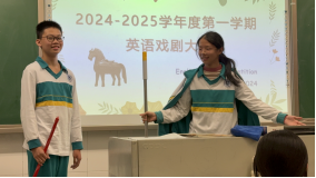 周日,英语的戏剧比赛如期举行。尽管只给每个组5分钟的时间准备,但那又如何呢?同学们脸上的笑容和跃跃欲试的兴奋感让准备的充分与否不再重要,每个人投入其中,不论名次,不论好坏,不论输赢,每个人都将会给与台上的表演者们送上发自内心的掌声与尊重!