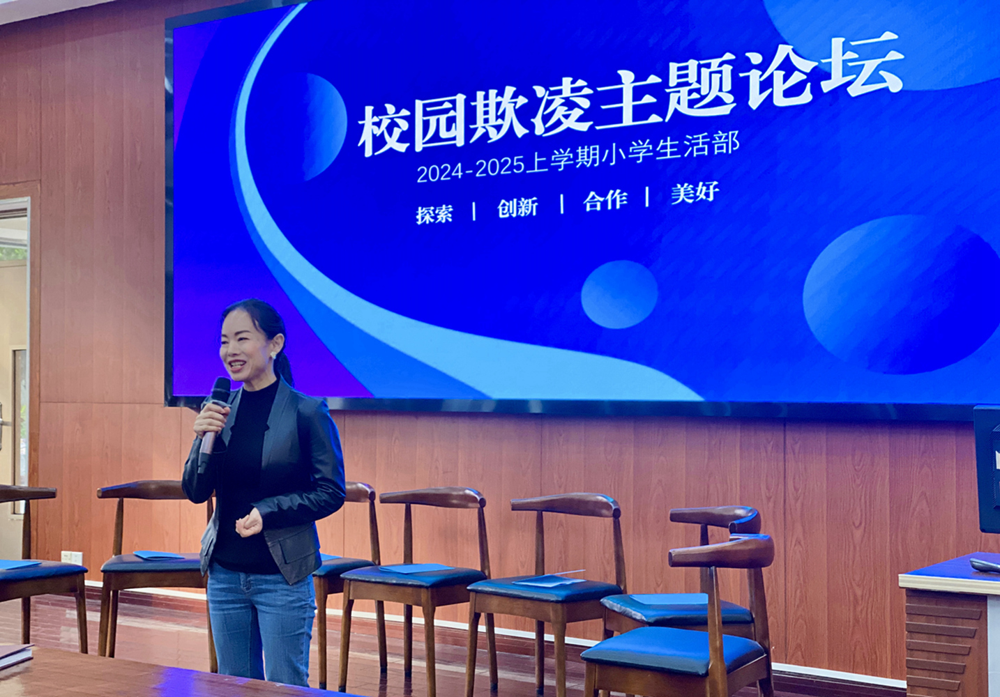 12月10日早上,一场以“预防校园欺凌”为主题的论坛活动在小学阶梯教室隆重举行。这是继各年级组的相关主题研讨会后再次的升级版教研活动。本次活动由王冬林主管主持,来自各个年级的嘉宾代表齐聚一堂,就五个议题进行了深入的交流和探讨,旨在提高师生对校园欺凌的认识,分享有效的预防和应对措施,共同营造一个和谐、安全的校园环境。