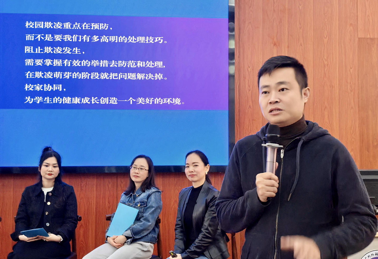 第三位发言人是六年级的蒙琼老师。她专注于女生之间的隐性欺凌问题解决。女生间的欺凌往往更为隐蔽,如排挤、谣言传播等。这些隐性欺凌的后果对学生造成的心理伤害会更大。蒙老师介绍了隐性欺凌的应对措施和学生之间人际交往的技巧指导,鼓励学生之间互相支持,共同抵制欺凌行为。