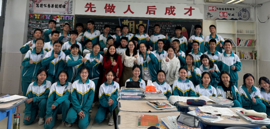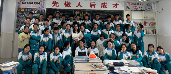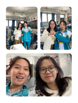 12月13日,那是我们与她告别的日子。我们送上了自己为他准备的卡片和小礼物,对他说了许多不舍的话语,她与我们所有人合影,许多同学还单独找她签名、合照。她说,她永远不会忘记我们,她也希望我们可以记得曾经有一位实习的英语老师教过我们。