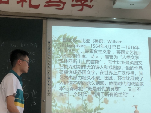 张奕德同学则带领大家走进莎翁的悲剧宇宙,以 “生存还是毁灭” 为引,深入剖析《哈姆雷特》中复仇与人性的复杂博弈。他跳出传统解读框架,聚焦主角的延宕性格与时代局限性,提出 “悲剧不仅是命运的枷锁,更是人性觉醒的阵痛” 的独特观点,让经典在现代视角下焕发新的光芒。