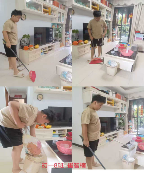 学校生活部开学第一周就开展了居家生活实践活动,主题很明确——动手做些力所能及的家务。