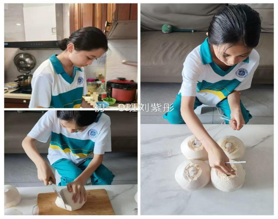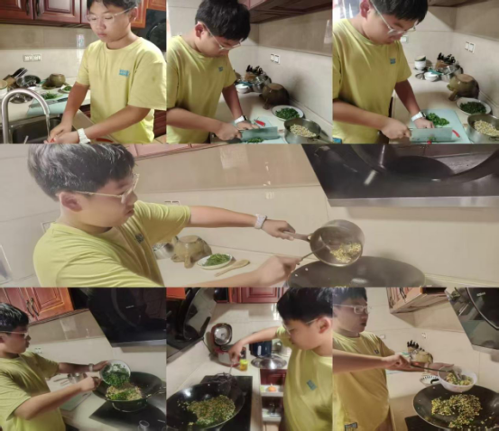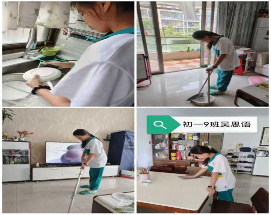 活动期间,同学们在家各显神通:有的系上围裙学做饭,有的跟着家人包饺子,有的给家里做了大扫除,还有的主动承担了饭后洗碗的活儿,每个人都在认真学做着自己力所能及的家务。