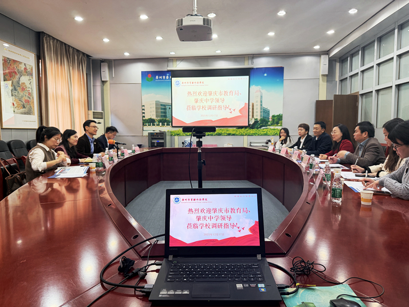 12月17日上午,肇庆市教育局副局长黎惠娴,肇庆中学校长杨荣、副校长周小慧,肇庆市教育局基教科科长姚灵娟一行,在广东外语外贸大学教育合作与发展中心党委副书记贺静的陪同下,赴我校开展调研交流活动。我校校长熊士军、副校长郭英涛等校领导陪同调研并参与交流。