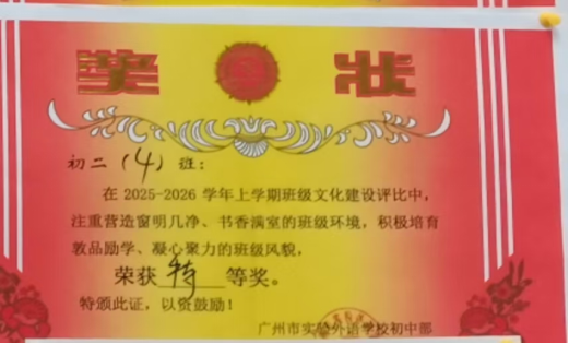班级文化是浸润心田的春雨,是凝聚力量的纽带。在本次学校班级文化评比活动中,初二博雅4班凭借鲜明的文化内核、扎实的建设举措,斩获特等奖,成为校园里一道亮眼的风景线。
