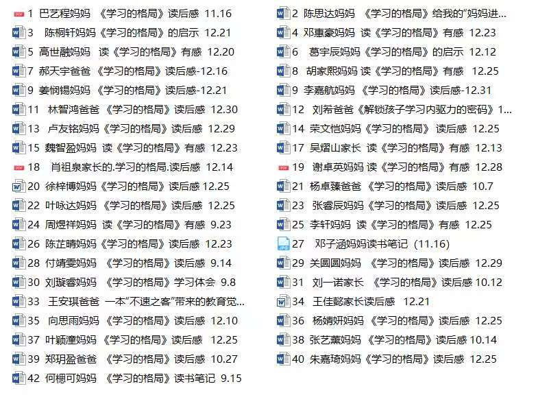 这个学期,六(10)班的家长在班主任肖红海老师的引领下,共读了黄静洁女士所著的《学习的格局》,希望通过家校共育的方式,促进家长主动阅读亲子教育书籍,提升家长的教育理念和智慧,共同为孩子的成长助力。一个学期下来,全班家长几乎全部读完这本书,并且结合自己的感受撰写读后体会。下面和大家分享几名家长用心写的读后感受。