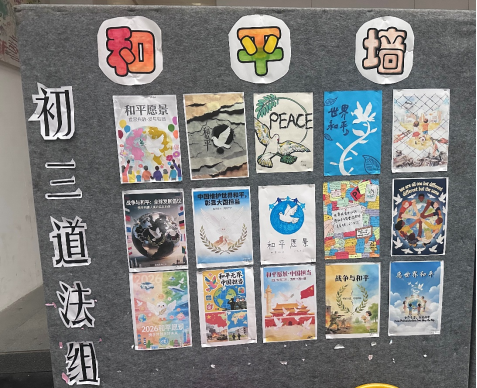 春暖花开,万物复苏。新学期伊始,学校中庭变身为一处充满思考与创意的“和平艺术长廊”。由初三道德与法治备课组精心策划的“AI赋能·和平愿景”主题海报创作优秀作品在这里展出。