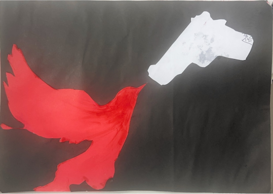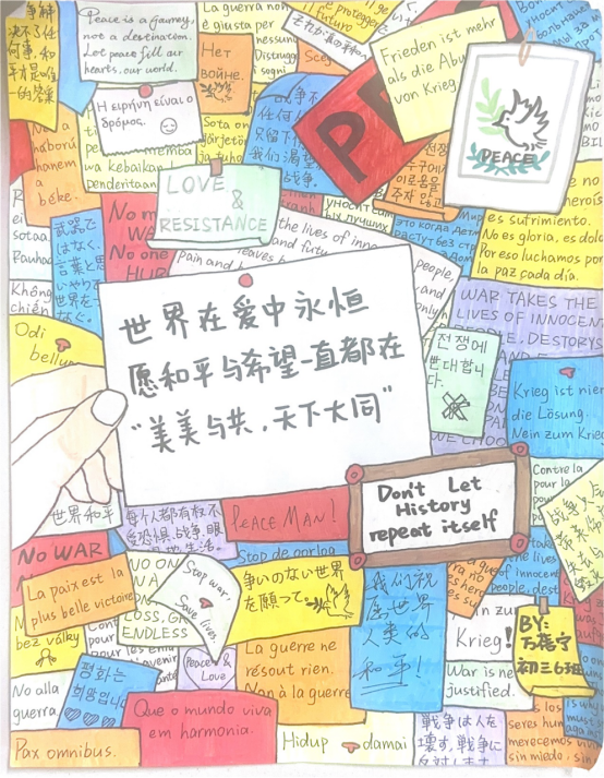 本次展览共收到寒假作业作品将近400幅,经备课组教师评选,最终展出优秀作品60幅。展览不仅为紧张备考的初三学子带来了一抹艺术的亮色,更在潜移默化中深化了学生对“战争与和平”辩证关系的理解,增强了对中国和平外交政策的认同。