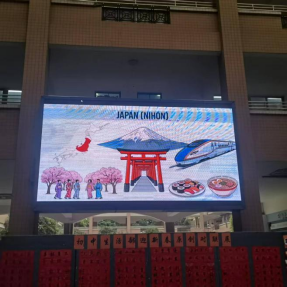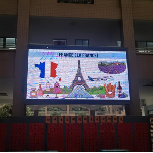 活动还未正式开始,现场就已被精心布置。汇聚了各个国家代表元素的精美的PPT在中庭展示,同时播放着各语种精心挑选的暖场歌曲,让人仿佛瞬间穿越到了异国他乡。