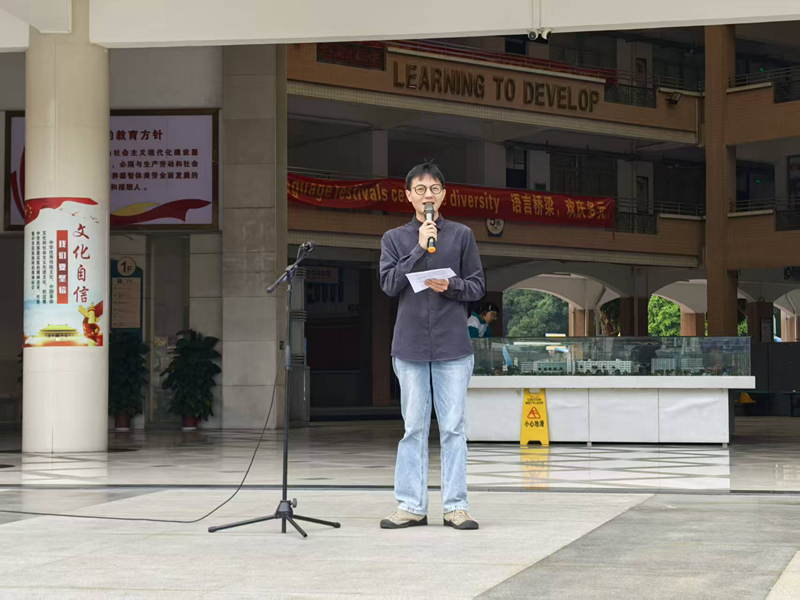 在热烈的掌声中,备受同学们喜爱的优秀年轻教师代表 巫永辉老师登台发言。做为历史老师,巫老师结合历史和实事,真挚寄语,字字句句皆是期许,声声话语饱含关怀。这份鼓励,我们将铭记于心,化作前行的动力,不负韶华,不负师恩。