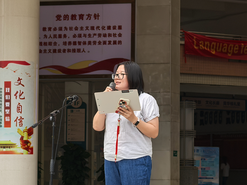 在师生们满满的期待中,初二年级主任黄颖老师健步走上舞台。