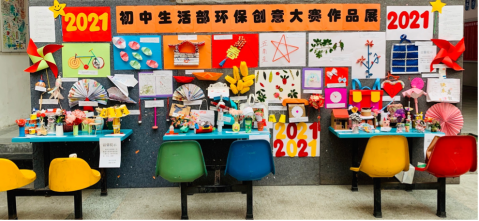 环境保护关乎着我们每一个人的生存环境,废物利用也成为了一种被人们日渐接受的“低碳”生活方式。为了让学生懂得废物利用,提高学生的环保意识,初中生活部举办了一场“变废为宝”的环保创意手工大赛,鼓励孩子们利用身边的废旧物资加以改造,在设计环保作品的过程中,既培养了孩子的创造力,想象力,也培养了孩子的动手能力, 而那些在生活中再平常不过的物品,经过我们手巧学生的或拼接或粘贴的处理,也都变成了另一个拥有新面孔新身份的好物,接下来就让我带你去瞧瞧孩子们的手工作品吧!