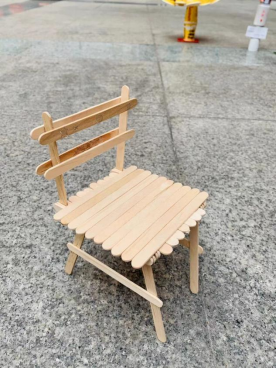 这是个用雪糕棒棒做成的小凳子,看上去很精致吧,让人看到就有种想坐上去的冲动呢!