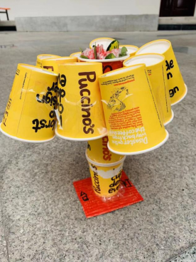它是一个由多个一次性水杯粘贴成的一盏小台灯,温柔的黄色能让人联想到家的温暖!