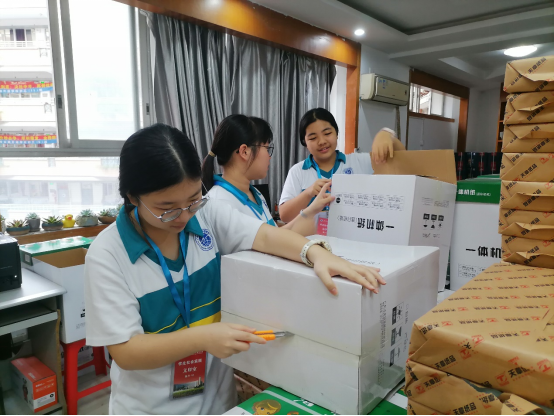 油印室里,机器的轰鸣声此起彼伏,空气中弥漫着淡淡的油墨味。凌芷芊,曾昕轶,黎瑾豫同学们的任务是协助老师打印、整理教学资料。看似简单的工作,却需要高度的专注。稍有疏忽,就会出现漏印、重印的情况。三位同学做的不亦乐乎。
